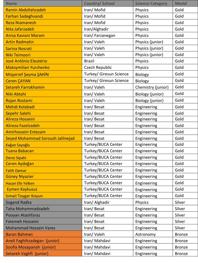 Note: Evaluation are according to the received projects in all categories